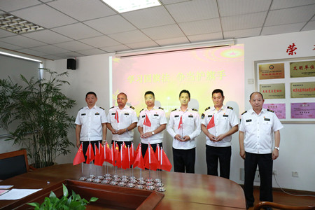 在中華人民共和國成立70周年之際,作為紅船旁的公交人,為表達對新中國深深的祝福之情,經(jīng)前期緊鑼密鼓的安排和部署,結(jié)合公司實際,作為“不忘初心、牢記使命”主題教育的一項內(nèi)容,9月27日下午,市公交公司組織開展了“學習國旗法 爭當護旗手”專題教育活動,用最樸實、最真摯的行動獻禮祖國70華誕。公交公司黨政領(lǐng)導(dǎo)班子成員、各黨支部書記、委員、黨員駕駛員及線路班長代表參加會議。