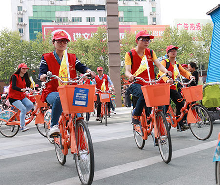 4月14日,南湖區文明辦在八佰伴廣場組織開展“七大文明行動”系列活動。公共自行車公司積極參與,調運了50輛公共自行車助力“七大文明行動”系列活動啟動,50位身穿紅色馬甲的文明志愿者騎著插有“迎接G20 人人講文明”的小旗子的公共自行車騎行在禾城街頭,倡導文明出行,提升廣大市民的文明素質,提高社會文明程度。