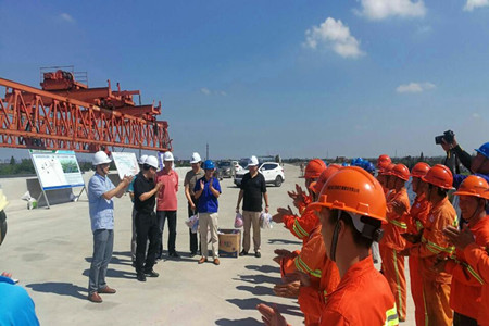 7月19日下午,市國資委副主任朱永強一行赴杭州灣大橋北接線(二期)工程項目調研基層黨建工作情況,集團公司副總經理李建國、交建公司相關負責人陪同調研。